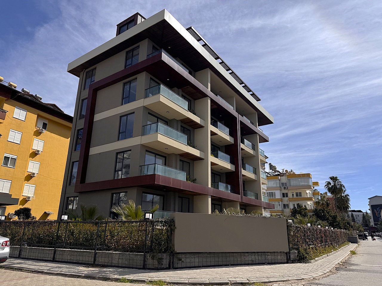 Комплекс расположен всего в 280 м от моря и представляет собой один пятиэтажный блок из 20 квартир. Планировки, как всегда, на все случаи жизни: